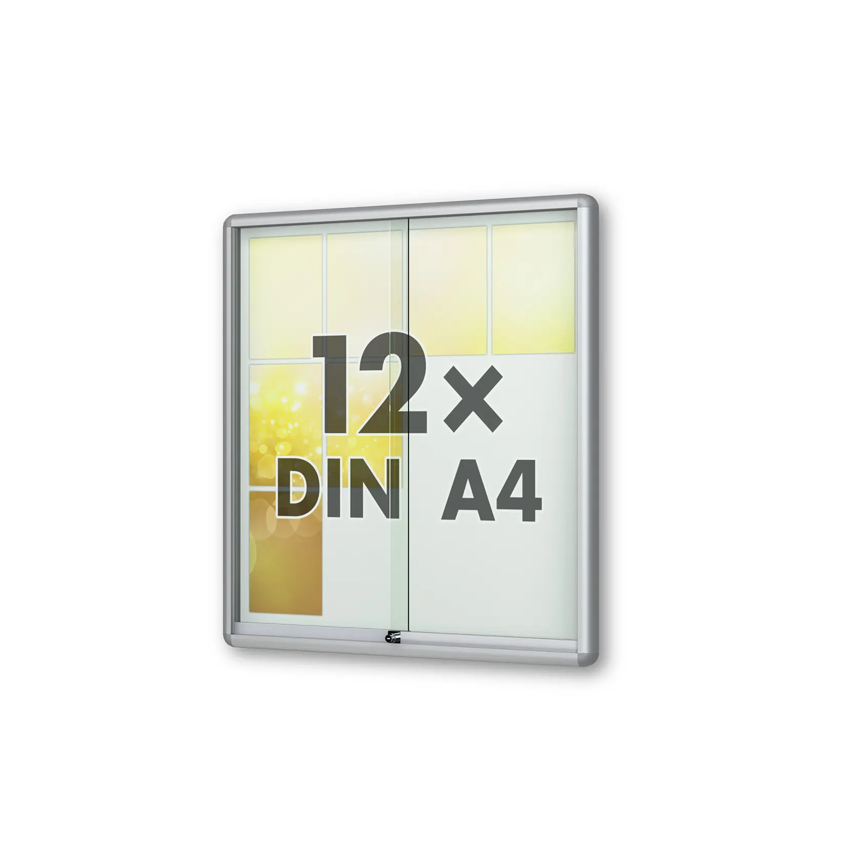 12 x DIN A4 Schaukasten Moveo - "die Schulvitrine" - 210 mm Bautiefe - mit Brandschutzklasse A1 - Rollengelagerte Schiebetüren✓ abschließbar✓ ESG-Sicherheitsglas✓