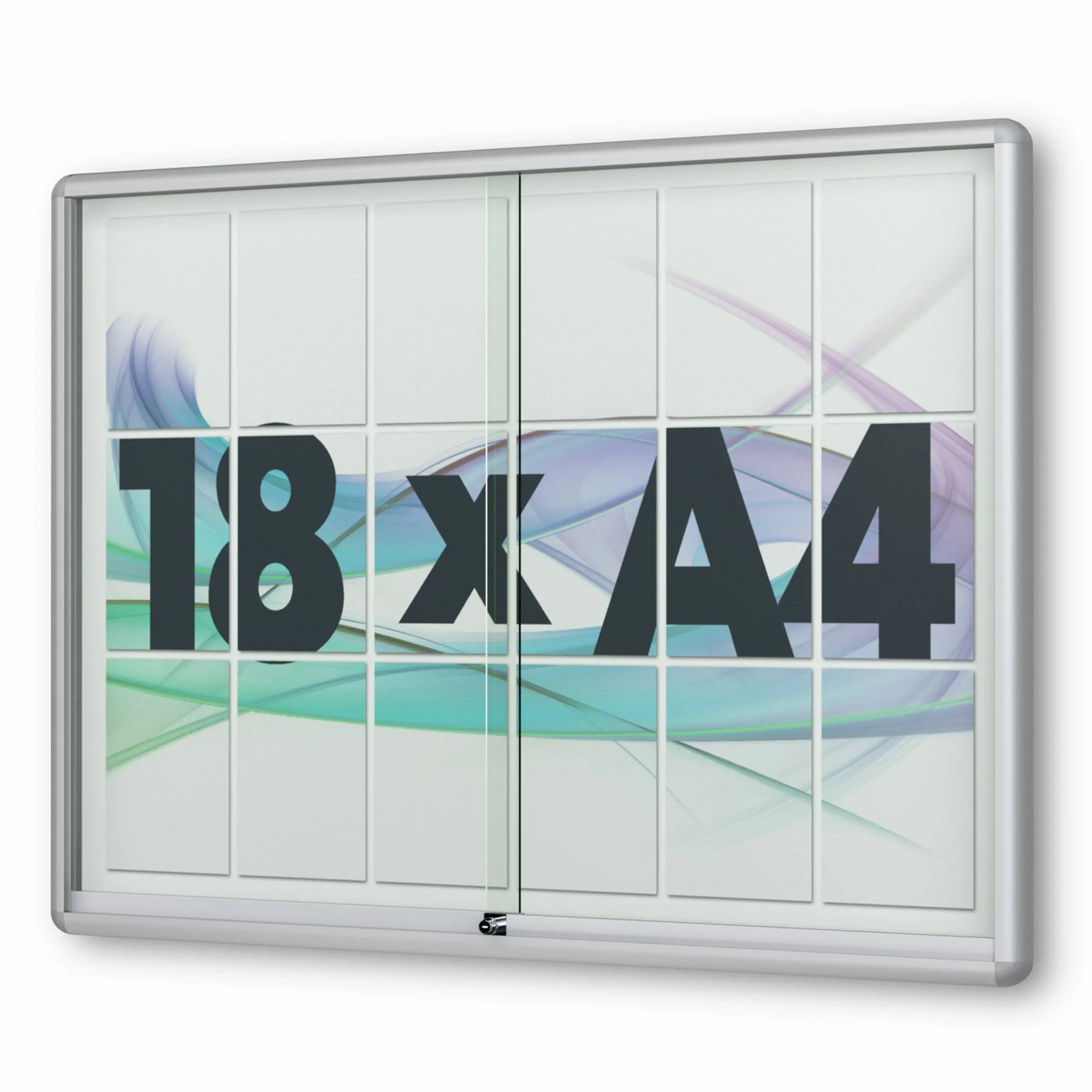 18 x DIN A4 Schaukasten Moveo - "die Schulvitrine" - 210 mm Bautiefe - mit Brandschutzklasse A1 - Rollengelagerte Schiebetüren✓ abschließbar✓ ESG-Sicherheitsglas✓