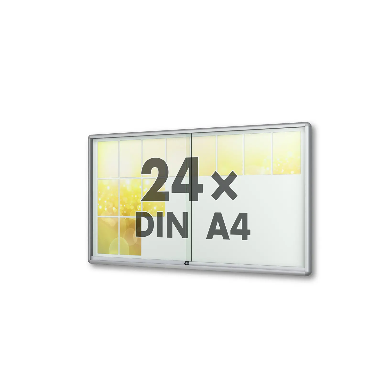 24 x DIN A4 Schaukasten Moveo - "die Schulvitrine" - 210 mm Bautiefe - mit Brandschutzklasse A1 - Rollengelagerte Schiebetüren✓ abschließbar✓ ESG-Sicherheitsglas✓